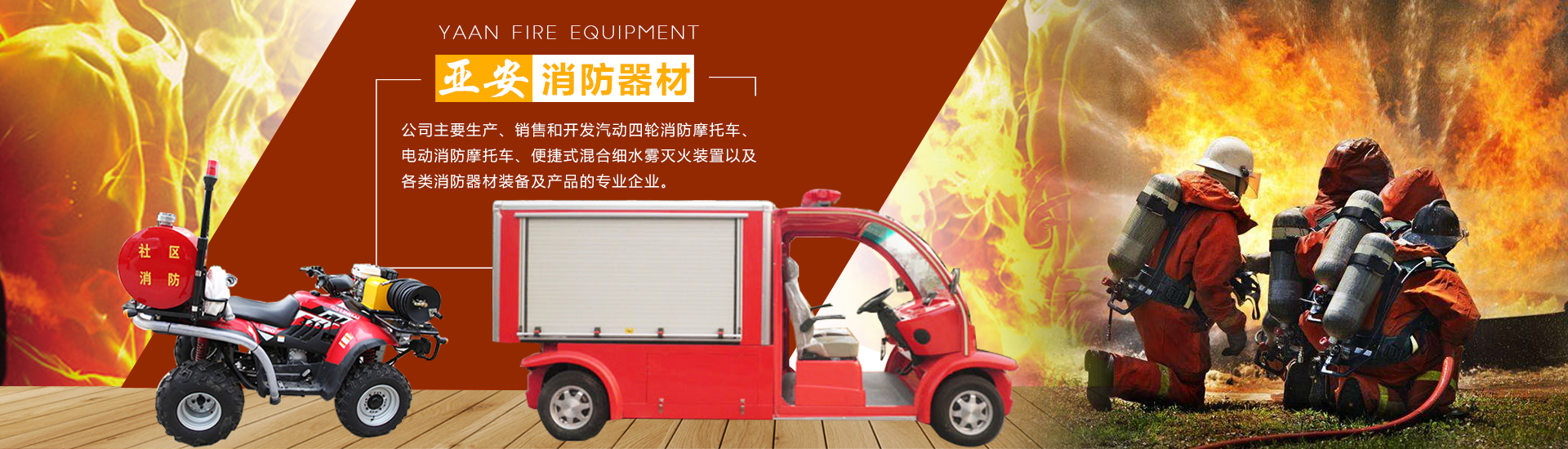 公司主要生產(chǎn)、銷售和開發(fā)汽動(dòng)四輪消防摩托車、電動(dòng)消防摩托車、便捷式混合細(xì)水霧滅火裝置